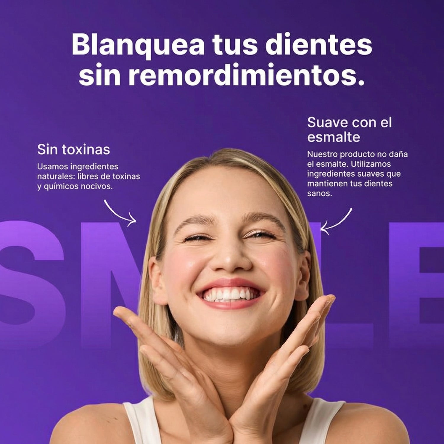 Blanquea tus dientes de forma segura y suave, sin dañar el esmalte. Fórmula sin toxinas, pensada para el uso diario y el cuidado dental.